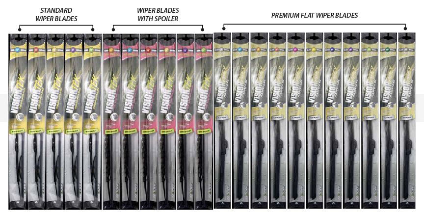 Based on the some design as a conventional wiper blade, the inbuilt spoiler utilises wind pressure to maximise screen contact at all speeds. Blade lengths range from 14" to 24" and are sold as a single unit in display pack.