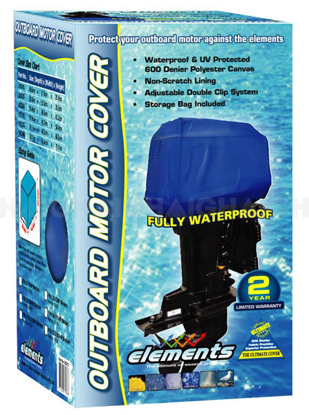 The Elements Outboard Motor Cover is made from durable, waterproof 600 Denier polyester canvas and offers maximum protection against UV rays and the elements. The soft, non-abrasive inner lining protect against paint fade and annoying scratches. Featuring a scalloped hem and adjustable base strap for a snug fit.