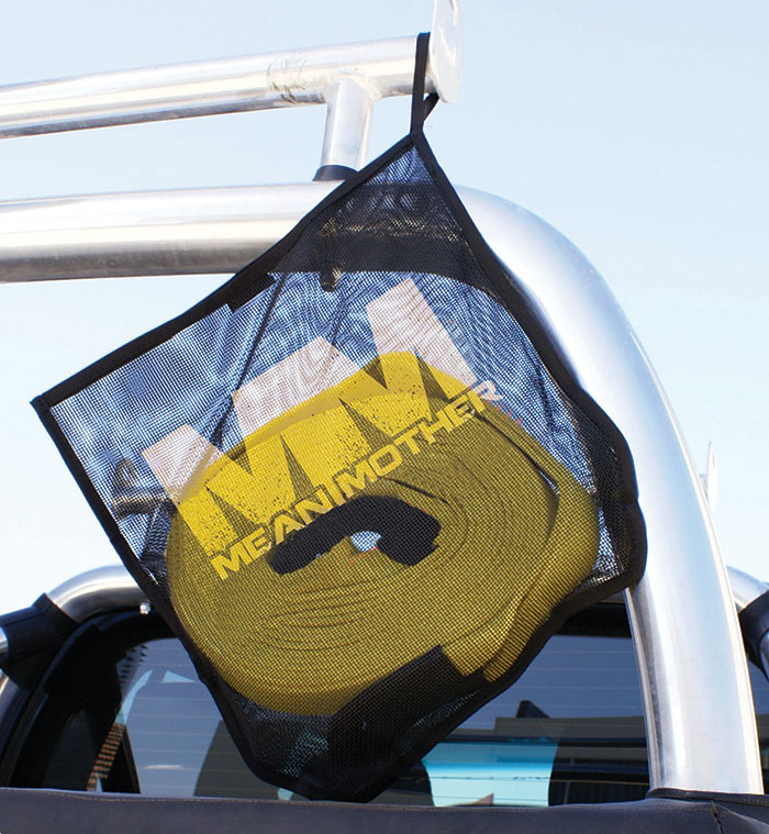 - The sewn-in loop strap allows it to hang over a bull bar or ute racks.