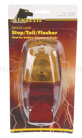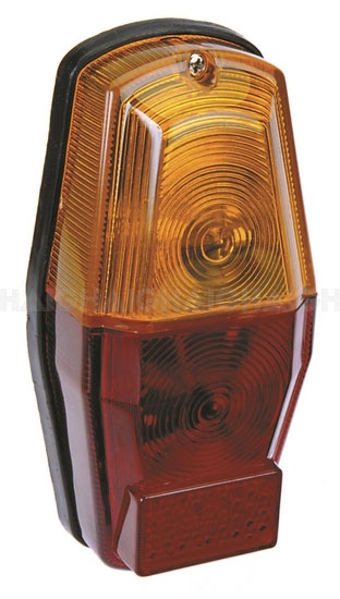 12V coffin shaped combination lamp includes flasher, brake and tail light.