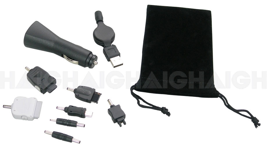 Includes 7 adaptors for phones