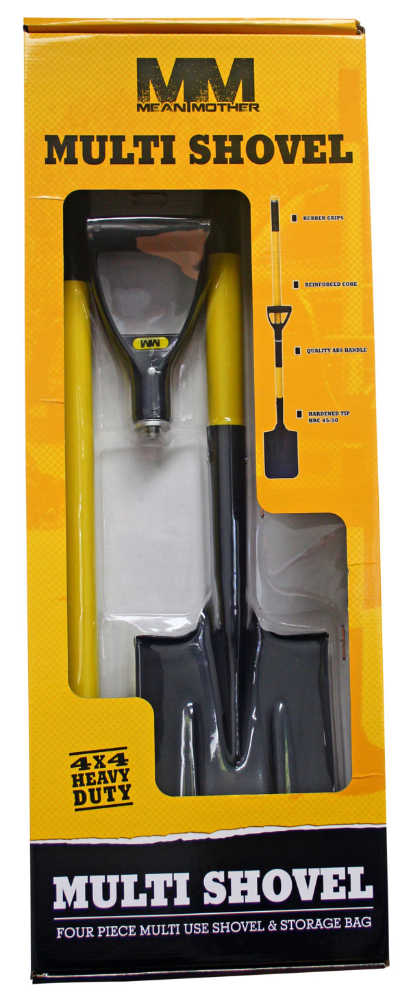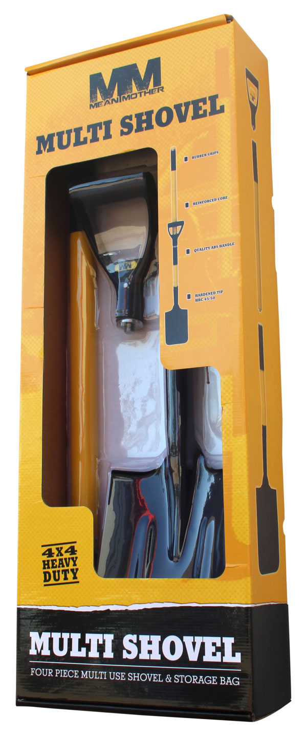The humble shovel or spade is an integral part of any 4WD recovery kit. The new 4pce Multi Shovel from Mean Mother offers the ultimate in comfort, control and leverage in any configuration and is an essential piece of equipment for every 4WD enthusiast. Its unique design offers you everything from a small spade to full sized long handle shovel to easily shift sand and dirt at a rapid rate. Its versatility is unmatched with up to five different configurations to suit most recovery situations. With a PE outer skin and reinforced steel core, it’s strong enough to handle the toughest of conditions and comes packed neatly in its own custom storage bag.