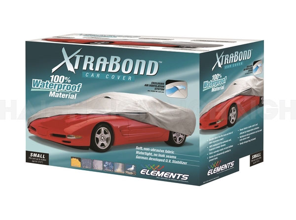 Xtrabond is a premium 100% waterproof car cover that protects your vehicles finish from harsh elements like rain, snow, bird droppings, tree sap, and UV rays. The exclusive patented vent system, resists rot and mildew by allowing the cover to breathe. The durable fabric features ultrasonically welded seams and reinforced side grommets to secure the cover.