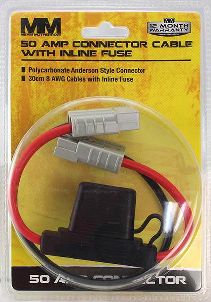 The Mean Mother 50 AMP Cables are pre-made with Durable, Heat and Impact Resistant Polycarbonate Anderson Style Connectors and Machine Crimped Terminals.