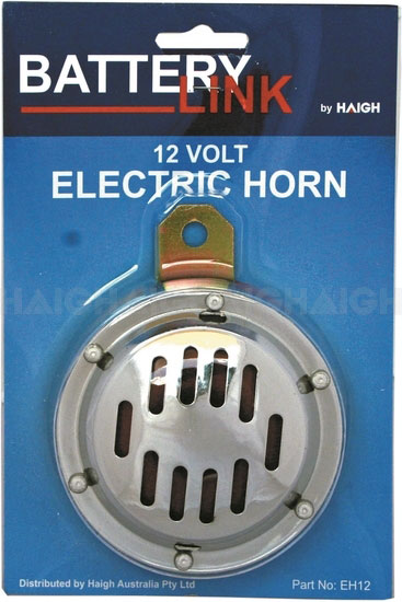 12V electric horn with chrome finish and adjustable tone screw on the back.