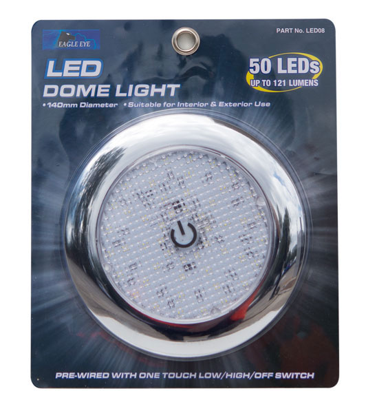 This water resistant dome light features a flush mount base and is ideal for illuminating internal and external areas. LEDs last up to 20 times longer and use approximately 90% less power than an equivalent incandescent globe. The wiring has been tinned to reduce the possibility of corrosion, especially in marine environments, and is suitable for cars, 4WDs, trucks, caravans, boats, and motor homes.
