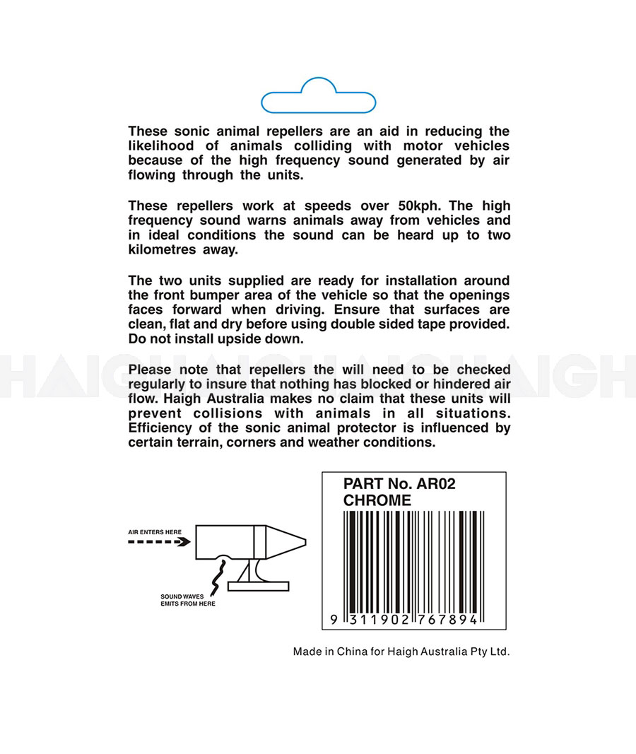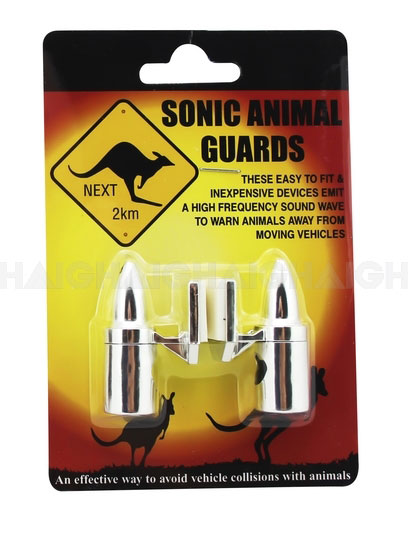 These handy sonic animal repellers fit to the front of most vehicles with the attached mounting tape. They can be helpful in warning off most wildlife such as kangaroos thus reducing the cases of accidental damage.