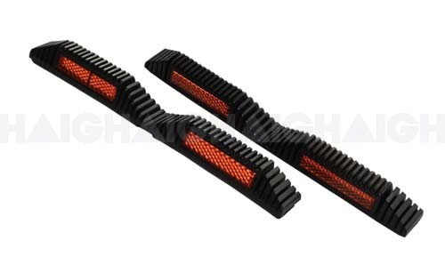 Door guards feature amber reflectors that face forward and red reflectors that face rearwards.