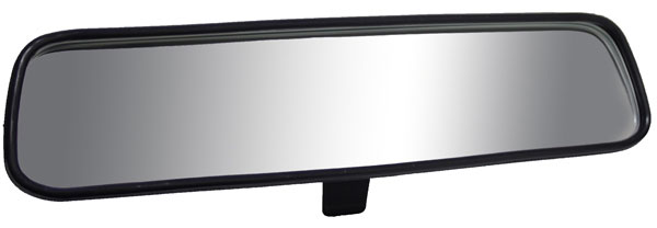 10" (250mm) interior rear view mirror for passenger cars. Universal mounting system is similar to that used on older Ford motor vehicles.