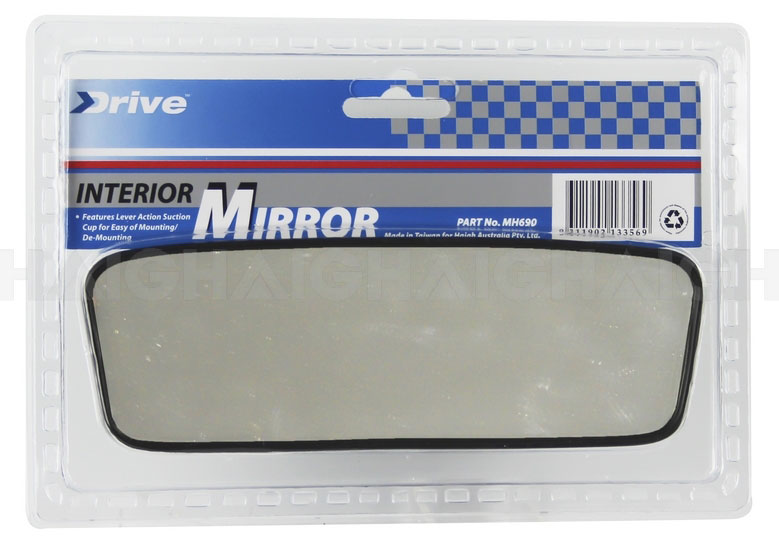 Interior rear vision mirror features lever action suction cup for easy mounting & de-mounting.