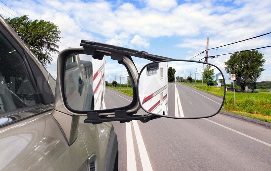 These towing mirrors fit over the existing side mirror to provide added vision while towing. They are fully adjustable and do not obstruct your existing mirror.