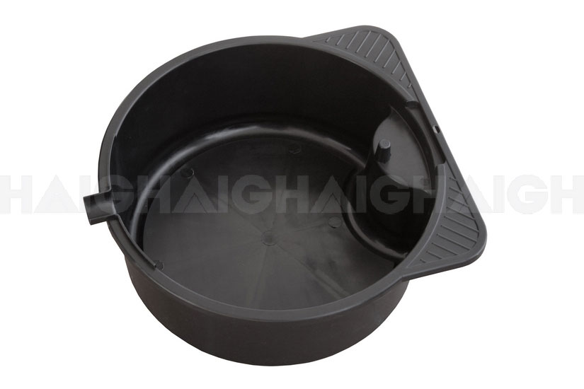 This oil drainage dish has a convenient pouring spout with a raised lip for easier pouring and moulded oil filter stand and handle.