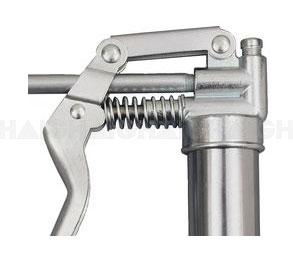 Compact 120cc pistol grip grease gun features a convenient one handed operation for easy greasing. Standard grease coupler with 150mm (6") extension is ideal for confined spaces.