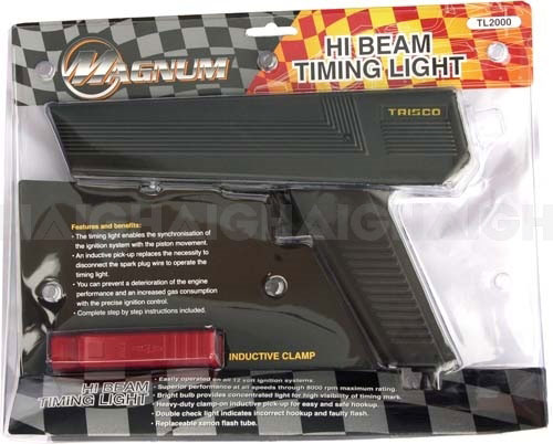 Suitable for checking ignition timing on automotive, agricultural and marine engines (12V/DC.). Features include xenon bulb and inductive pick-up. Impact-resistant housing with on/off trigger.