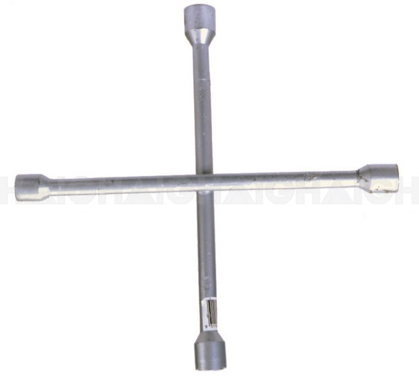 Traditional wheel brace with multiple wheel nut sizes of: 17, 19, 21 mm and 13/16"