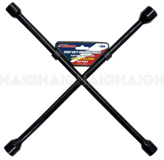 Made bigger to improve leverage, this heavy duty steel wheel brace features a powder coated finish with four wheel nut sizes (17mm, 19mm, 21mm & 22mm).