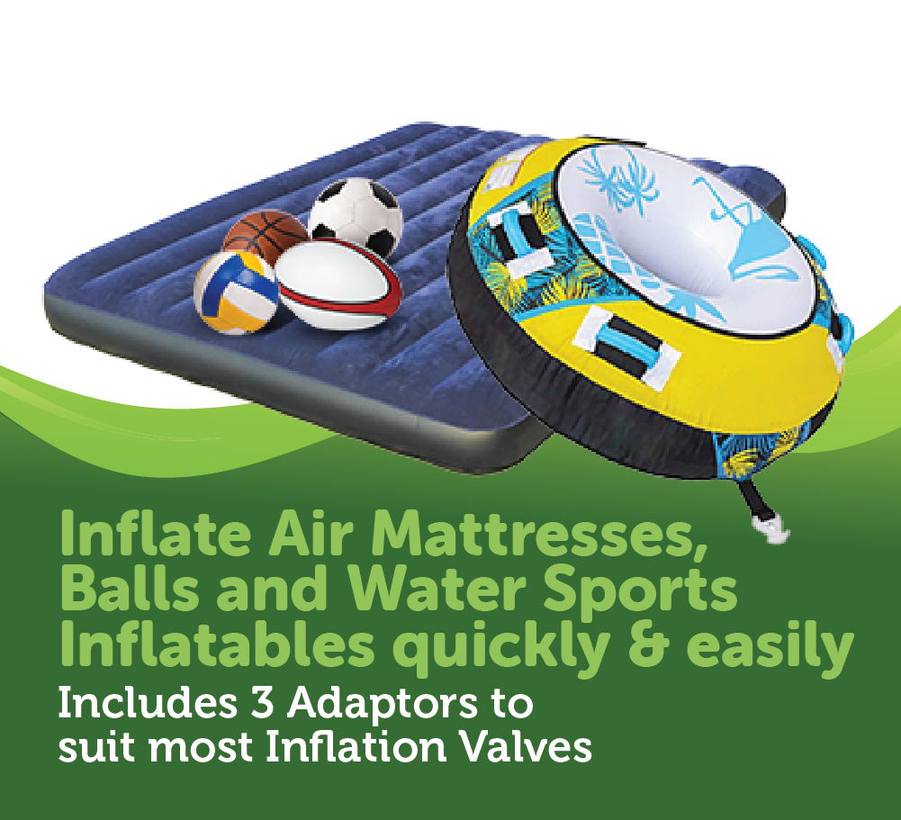 - Screw on Tyre Valve Connection - allows for Hands Free Inflation