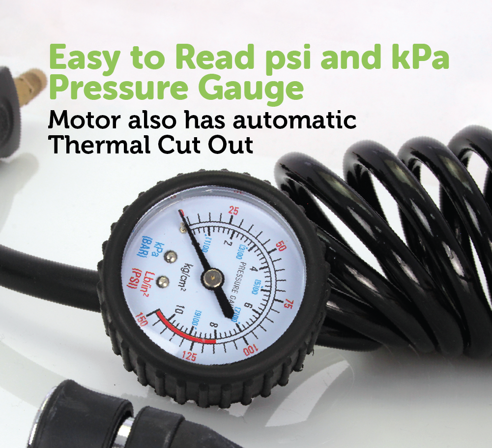 THIS AIR COMPRESSOR IS PERFECT FOR INFLATING TYRES ON CARS AND LIGHT SUV TO MAINTAIN CORRECT TYRE PRESSURES TO ASSIST HANDLING, BRAKING PERFORMANCE AND REDUCE TYRE WEAR.