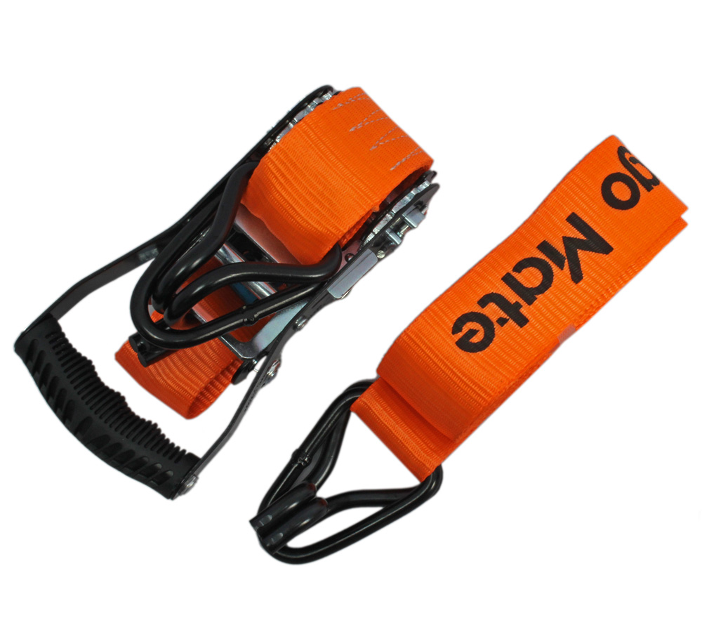 Heavy duty polypropylene webbing strap features steel hooks with locking D-rings for more load securing options. Larger handle provides better grip. Heavy duty automatic locking ratchet action with thumb release.