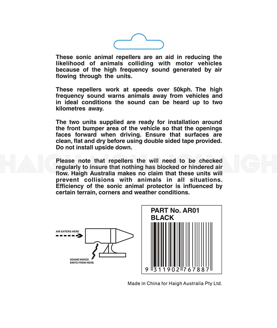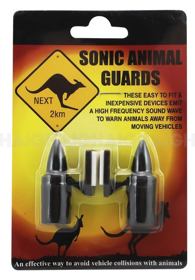 These handy sonic animal repellers fit to the front of most vehicles with the attached mounting tape. They can be helpful in warning off most wildlife such as kangaroos thus reducing the cases of accidental damage.