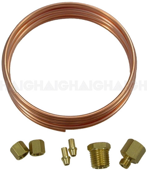 Universal copper fitting kit to suit mechanical oil pressure gauges. Contains top quality tubing, brass fittings, adaptors and olives to suit most engines.