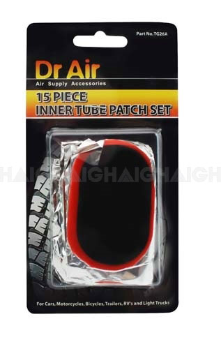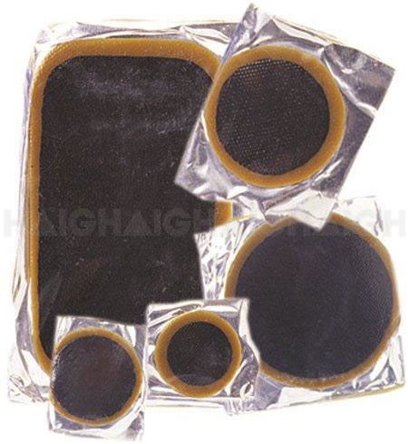 A selection of assorted patches for the repair of tyre tubes. There are five sizes to suit a variety of applications from push bikes to tractors all neatly packed in a full colour blister card.